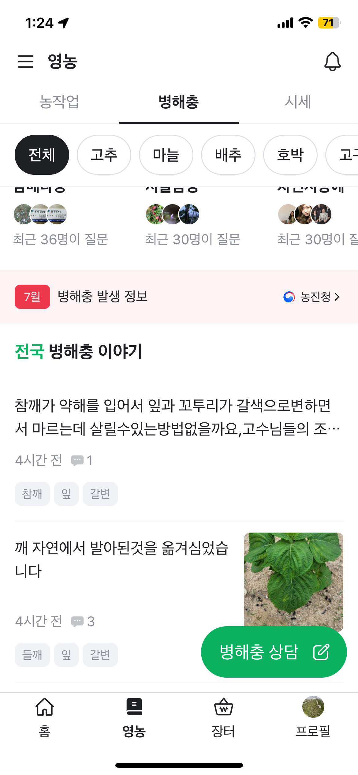 이웃들의 병해충 소식