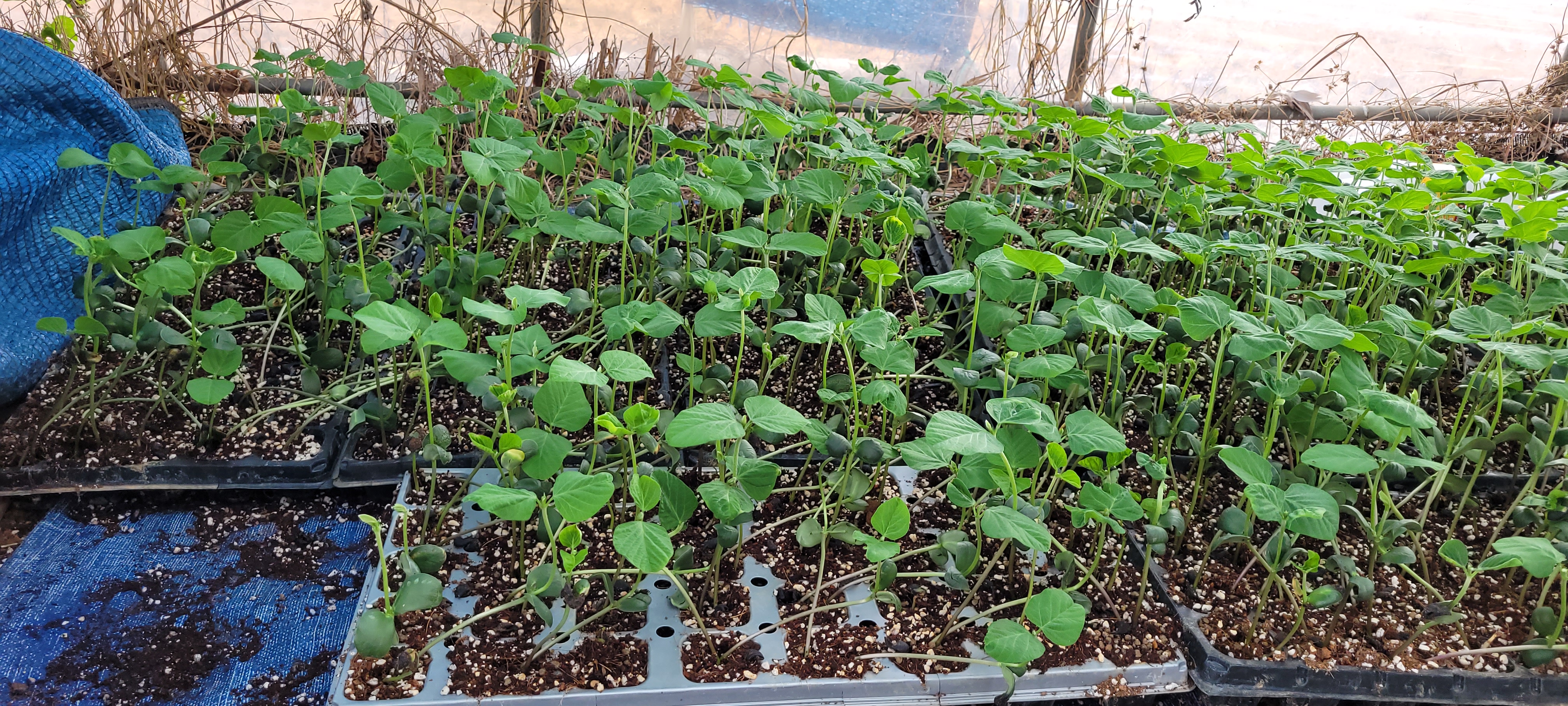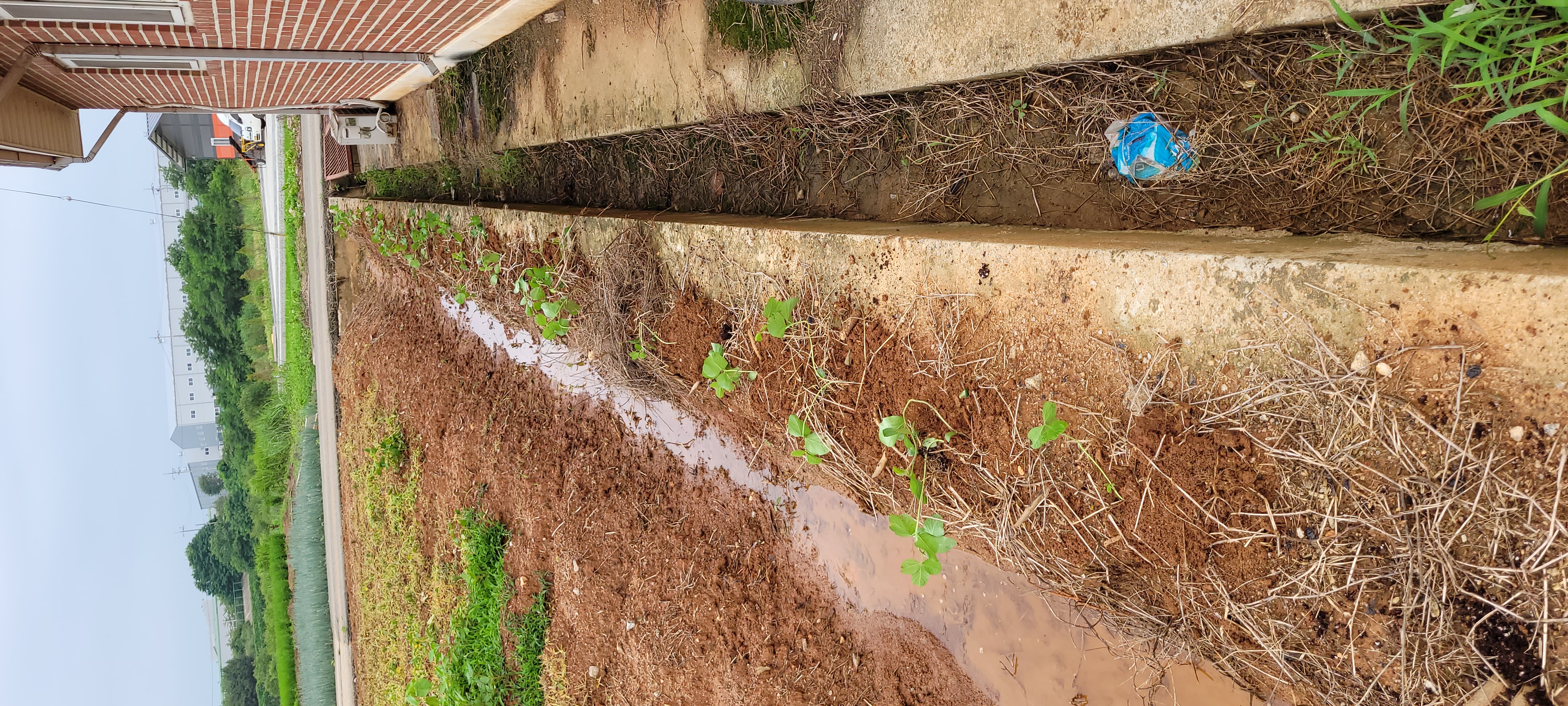 서리태 모종, 참새들이 노리고 있어 주변에 빙초산과 크레졸 투척
