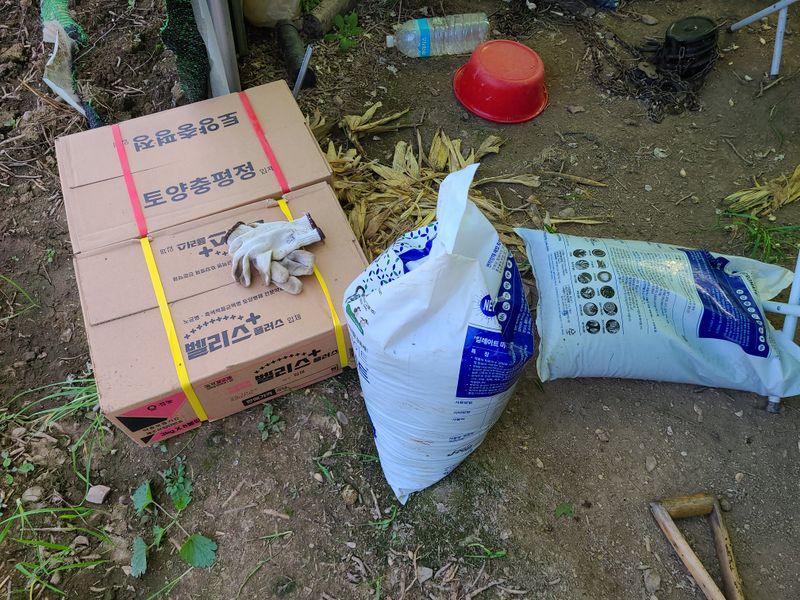토양살충제 토양살균제 복합비료 살포 및 로타리 잡업