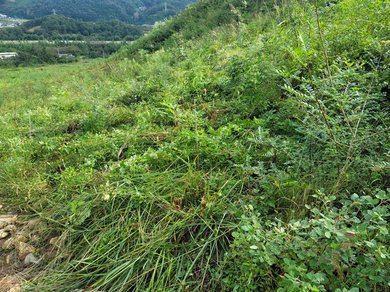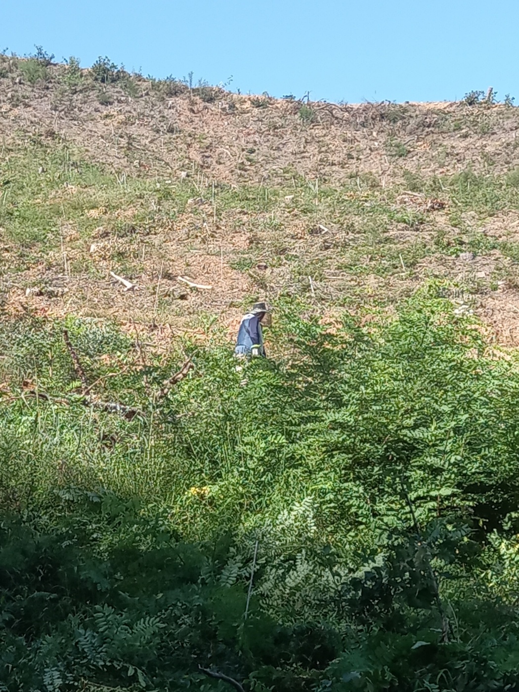 제초작업.봄에는 혼자서 10일간 5정보 제초작업을 마쳤는데 올여름은 비가 많이와서 작년보다 잡초와 잡목이 많이자란데다 면적도 늘어 이번에는 20일 이상 걸릴듯싶다.더우기 잡초가 표지목을 덮어 살펴가며 작업하느라 진도가 느리다.비나 너무 많이 온 탓인지 다래,음나무,두...