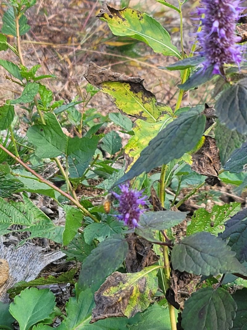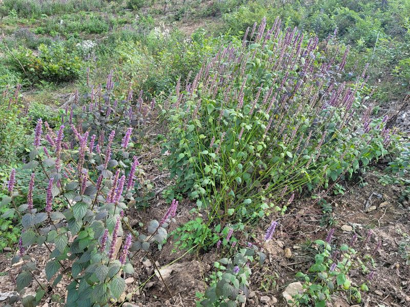 제초작업:더위가 가신후 부터는 제초작업이 주업무.작년가을에 뿌려놓은 연백국화,산국,바이텍스,아니스히솦,금밀초들이 자라는곳에는 잡초가 별로 없어 일이쉽다.몇십통 벌들의 먹이도 되어주고있다.민트향의 히솦차를 만든다며 아내가 꽃송이를 따고있다.귀산촌 2년차... 끝이 보이지...