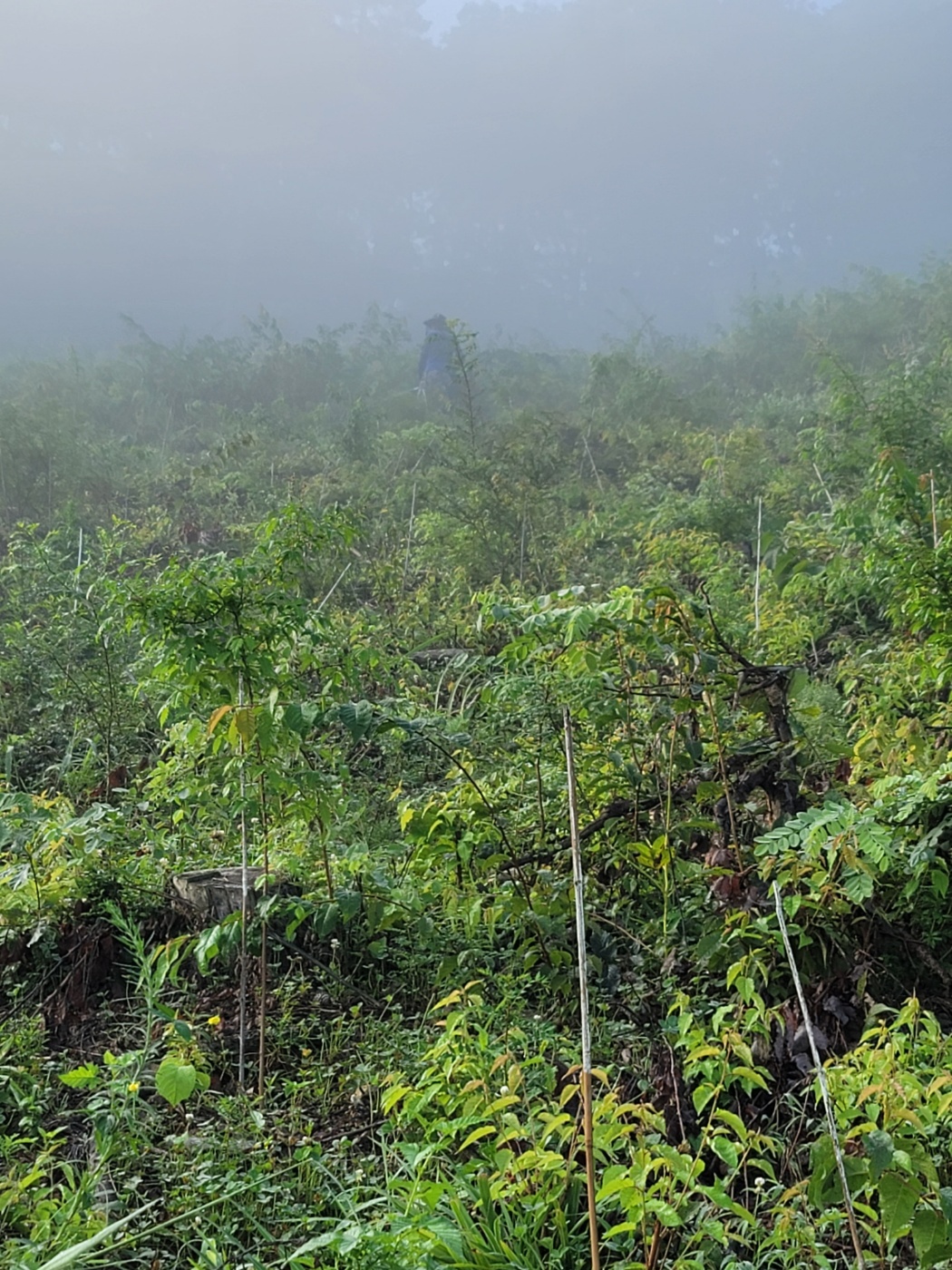 제초작업 :묘목을 심을때 크기가 1m 정도는 되어야 잡목들에 묻히지 않으며,작은것들은 잡목에 묻혀 자리지 못하고 제초잡업시 잡목과 함께 잘려나가기 쉽다는것을 배웠다.