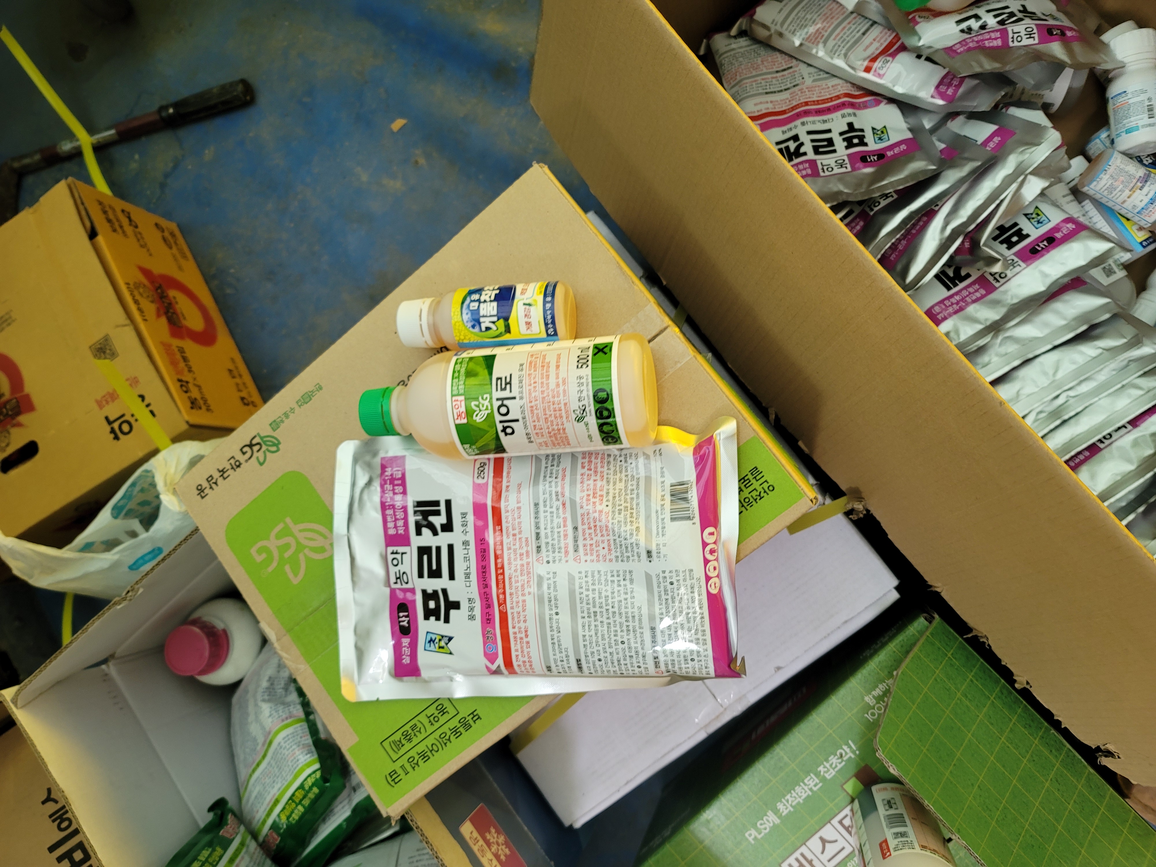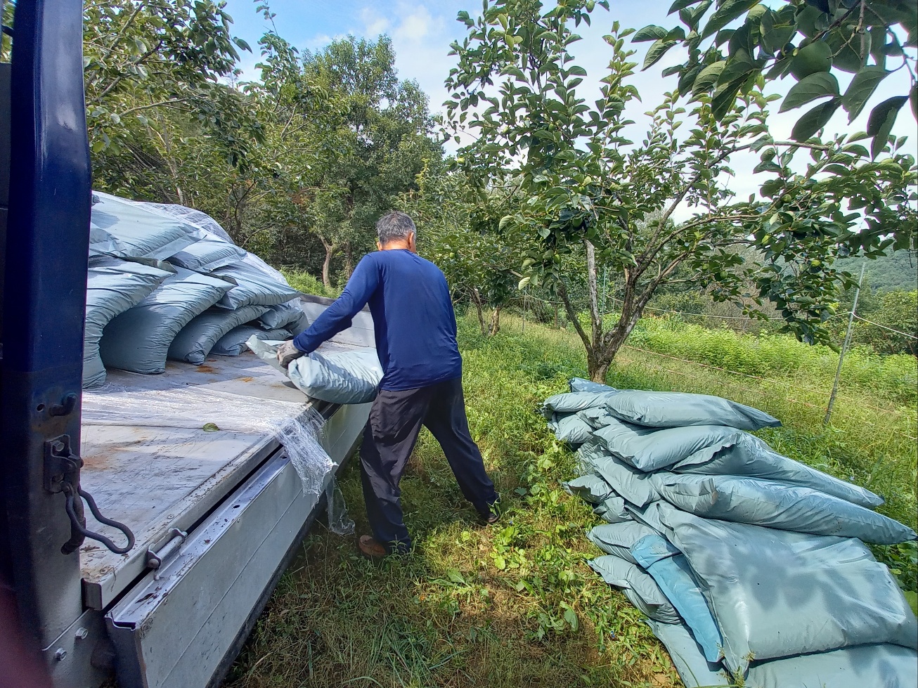 상주시 음식물 처리시설에서 무료로 나눠주는 퇴비 확보.20kg x 50포.묘목장에 기비로 사용예정.