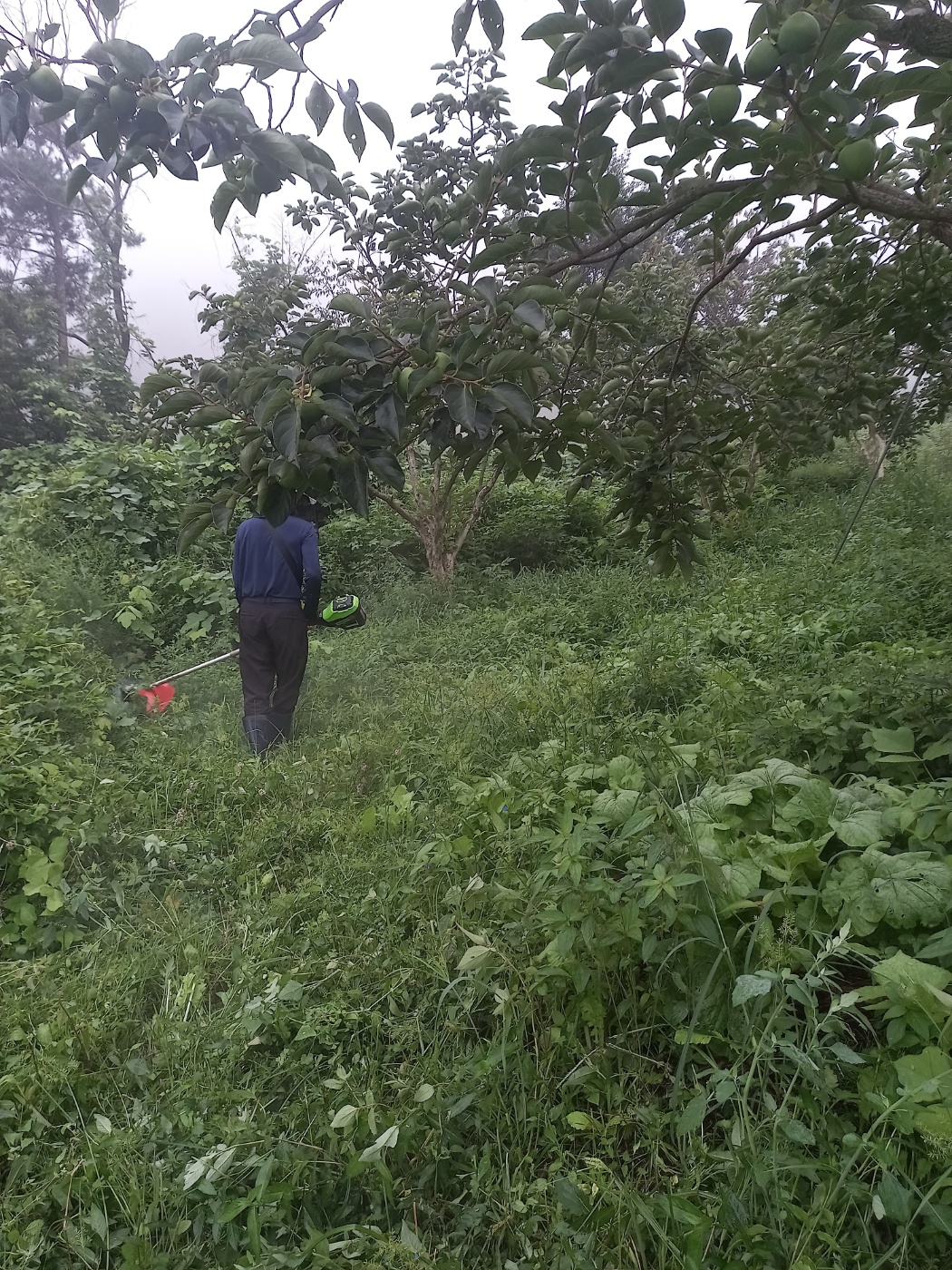 예초작업.해뜰무렵 시작해서 두어시간 하다보면 예초기 배터리가 그만 하란다.작년에 비하여 훌쩍자란 나무들이 대견하다. 자칫 방심으로 묘목을 자르면 속이 상한다.