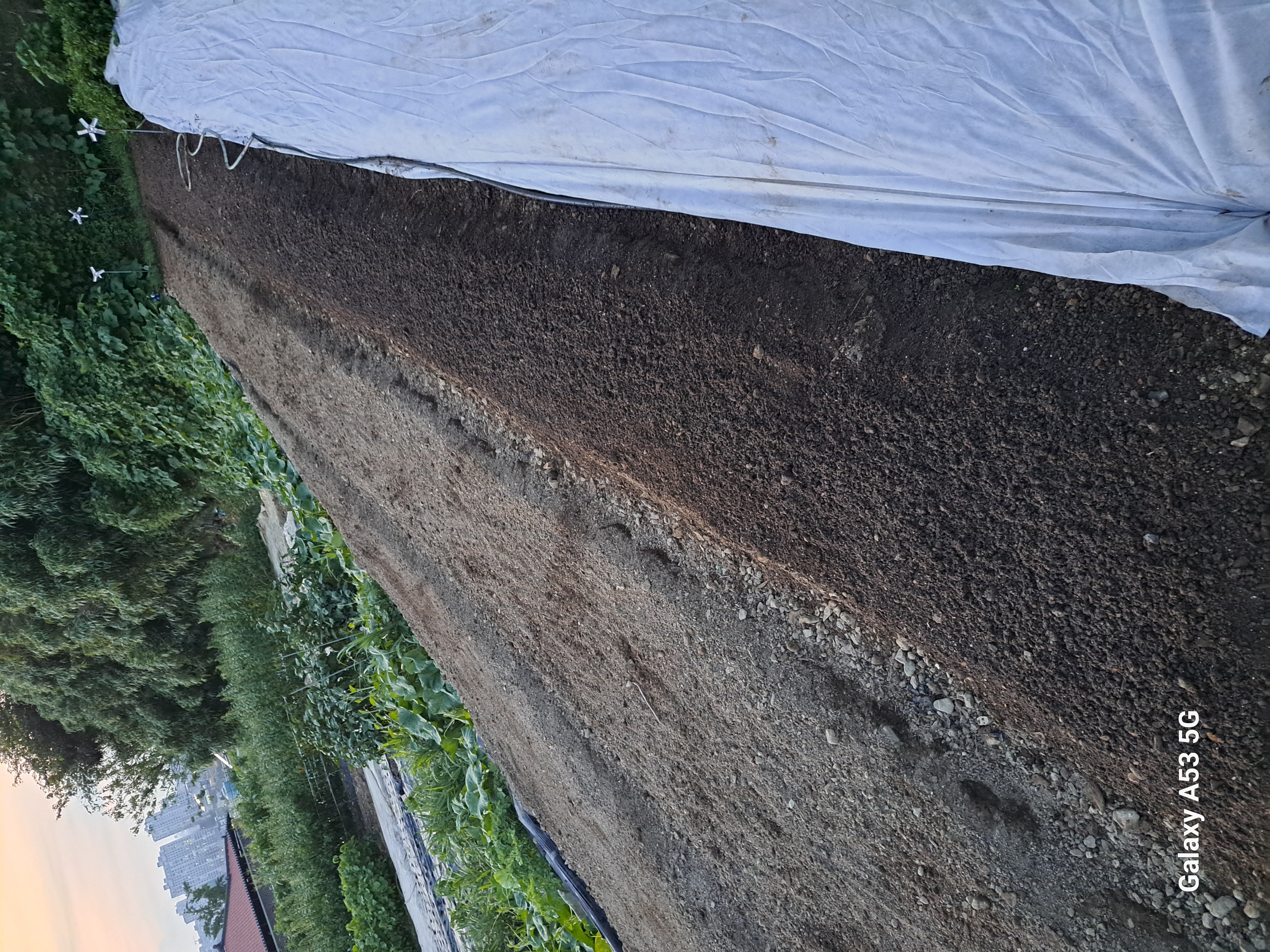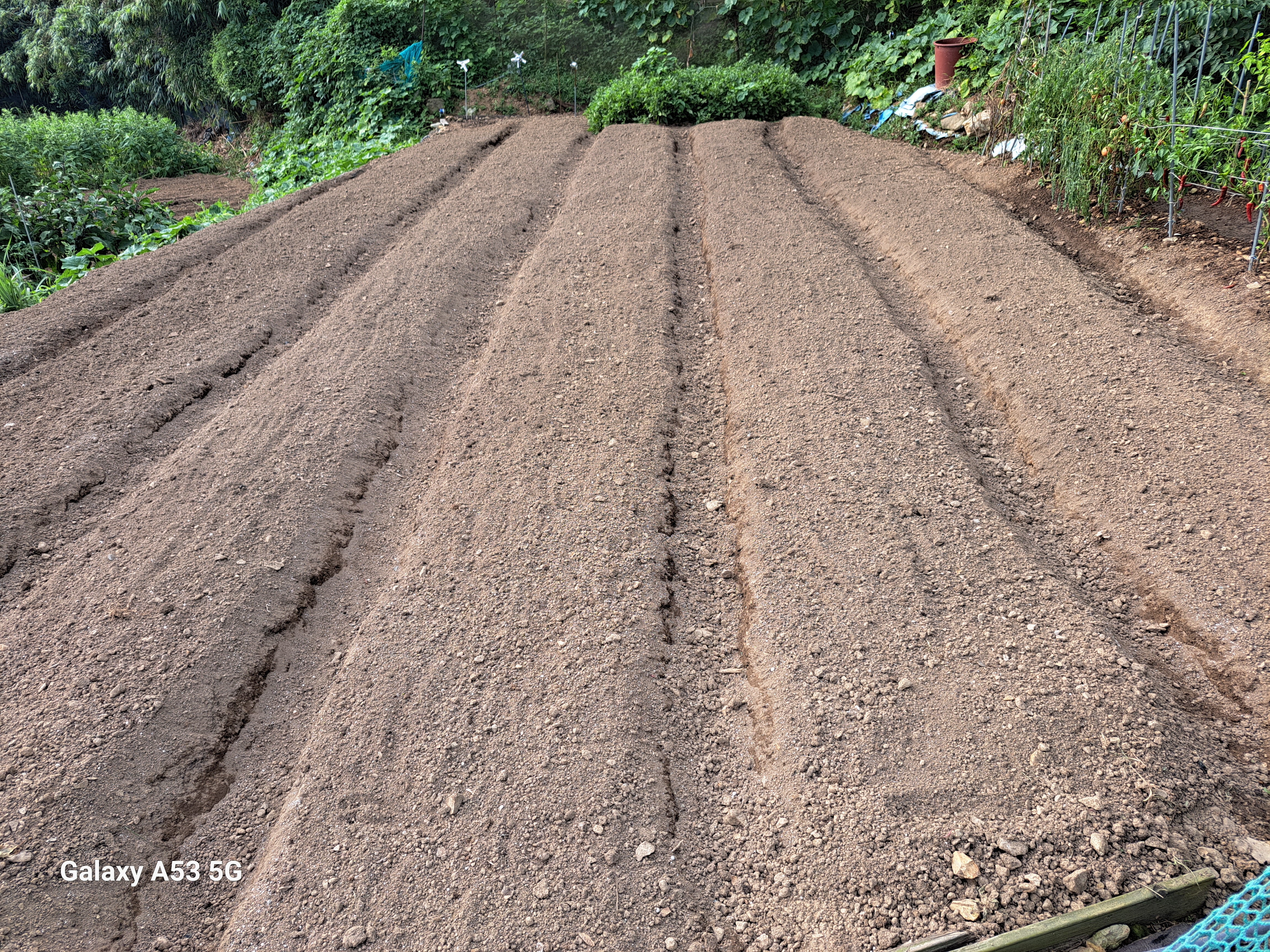 김장 배추, 무 심기 위하여 비료, 토양살충제 뿌리고 두둑 작업 완료.