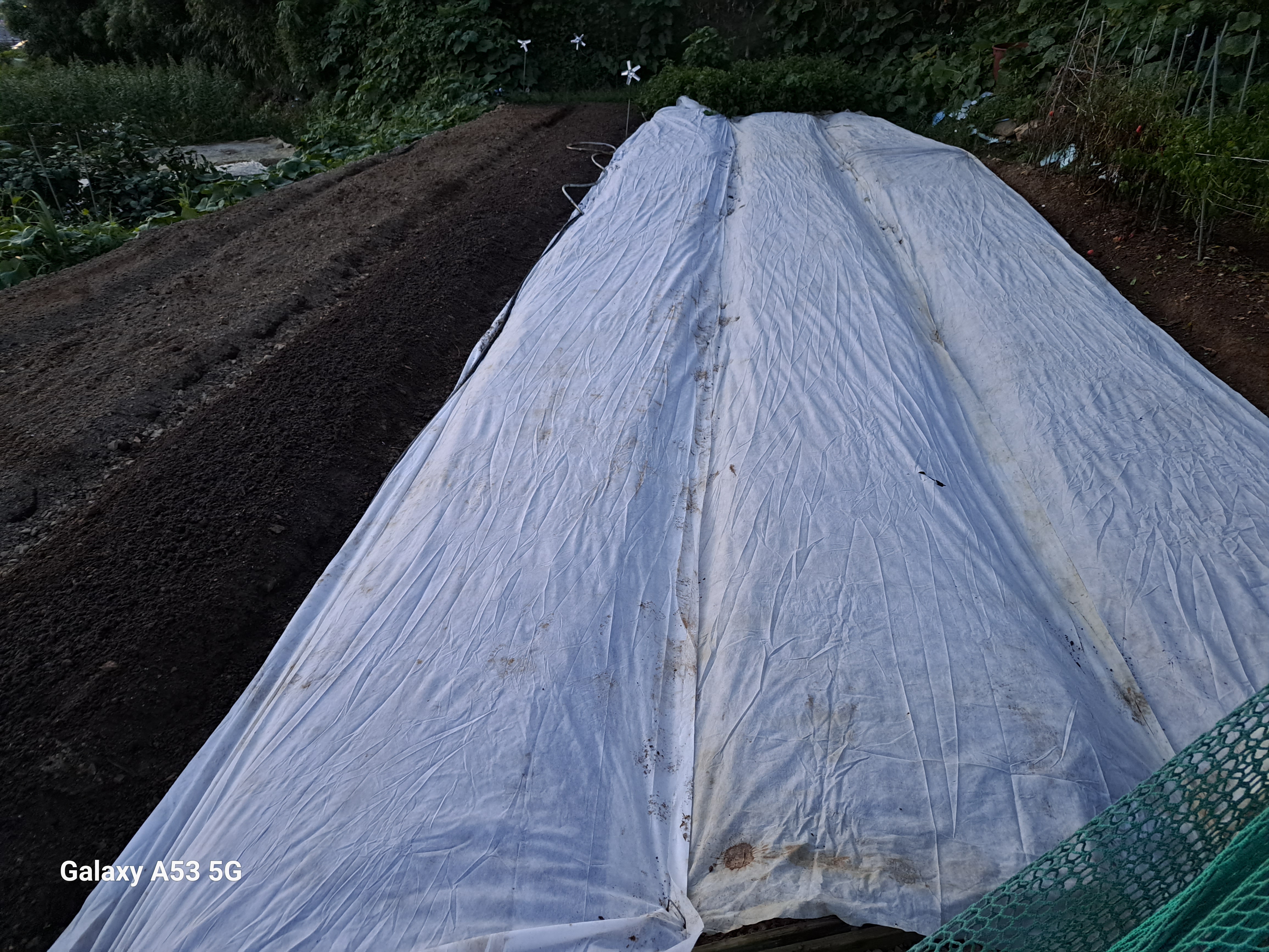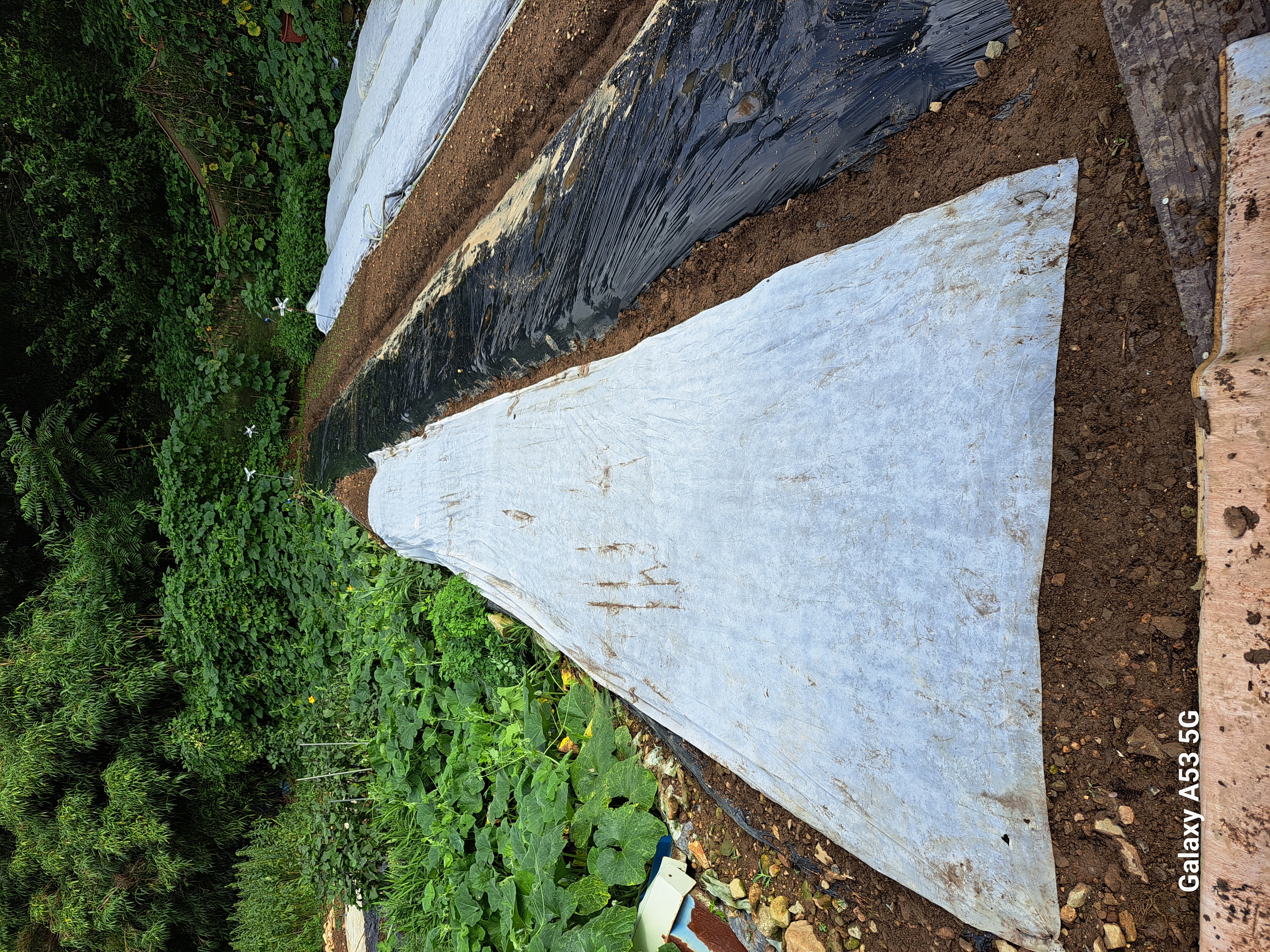 줄콩 파종. 서리태 모종 이식 완료. 서리태 부직표 수거